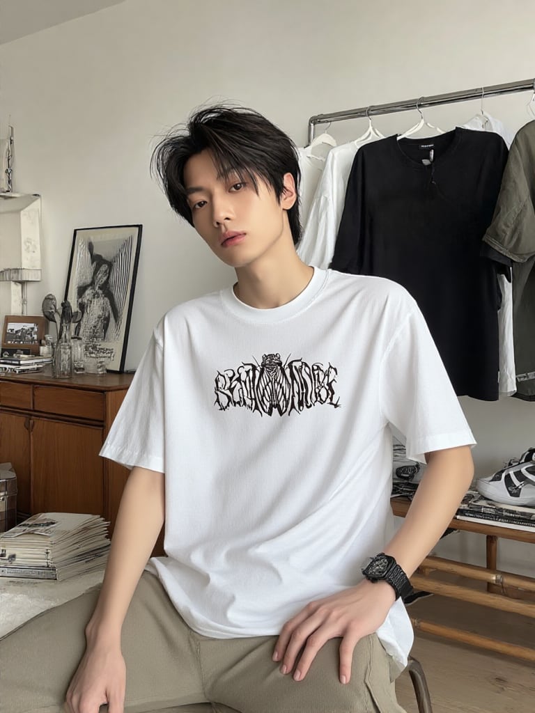柊モデルのホワイトTシャツ。